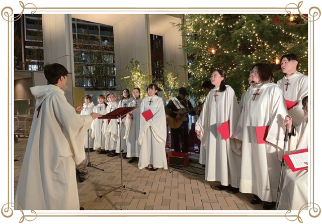 The Sophia University Choir has been engaged in music-based service activities both on and off campus since its founding in 1961. Currently, the choir participates in weekly Masses for students and Faculty & Staff members held at the Kulturheim every Friday, as well as two annual concerts and a charity concert at the Hotel New Otani. The choir also takes part in key university events such as graduation and entrance ceremonies.