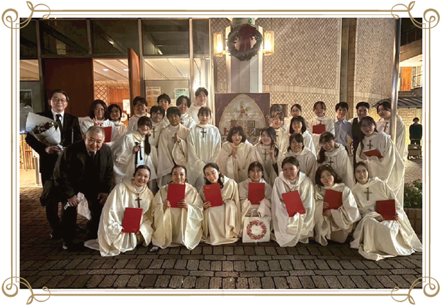 現在は毎週金曜日にクルトゥルハイムで開かれる学生と職員のためのミサの他、年に2回のコンサート、ホテルニューオータニでのチャリティコンサートに加え、学位授与式や入学式といった上智大学の行事などにも参加しております。
