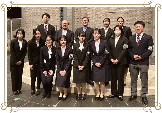 - Ⅲ.大学主催の復活祭、クリスマス、入学感謝ミサ、卒業感謝祈りの集い、カトリック典礼行事のコーディネート